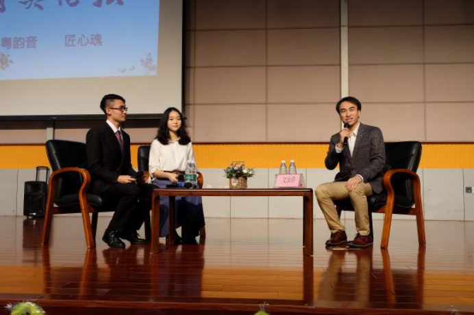 访谈开始,文汝清老师首先对我院李平老师和池思晓老师的热情接待表达了感谢。随后,文老师向大家分享了自己毅然进入广东粤剧学校,从期待、畏惧到咬牙坚持,从无到有的经历。跟随多位导师学戏,他懂得了为学戏先学做人、德艺双馨德为先,要感恩助己者,馈赠更多人;求职险些失利,他懂得了想象中的自我和实践的差距,要谦虚自省,心胸开阔、海纳百川。文老师表示,不可重来的舞台演出中,一颦一蹙甚至每一束光都经千锤百炼而成,美好百分之百呈现的背后是演员生命的燃烧。匠心所在之处,是仁义、爱与美的栖居之所。