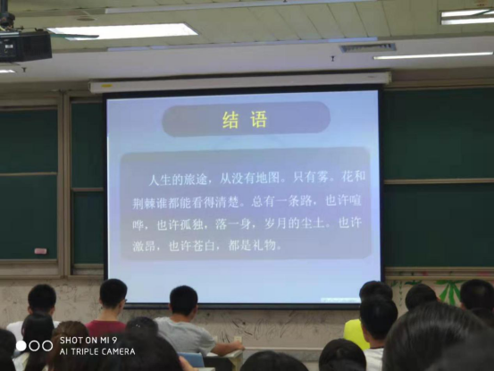 在本次班会中,辅导员邱敏老师发表了以“新生活 新起点 新规划”为主题的演讲。中国人民大学张鸣教授曾说过:“人的根本素质就是适应环境的能力。”在演讲中,邱敏老师介绍了大学与中学各方面的不同,提高了同学们适应大学环境的能力,帮助同学们更好地适应新生活。站在新起点,同学们或多或少会有些迷惘,而邱敏老师提出了“五个需求”“五个‘你能做到’”“五个‘你一定能学会’”,简洁明了而富有深情的语言为同学们拨开了云雾,为同学们的新规划指明了方向。其中,邱敏老师通过“写给5年后的自己”慢递邮箱,呼吁同学们明确前进方向,惜取少年光阴,在同学们中引起了较大反响。