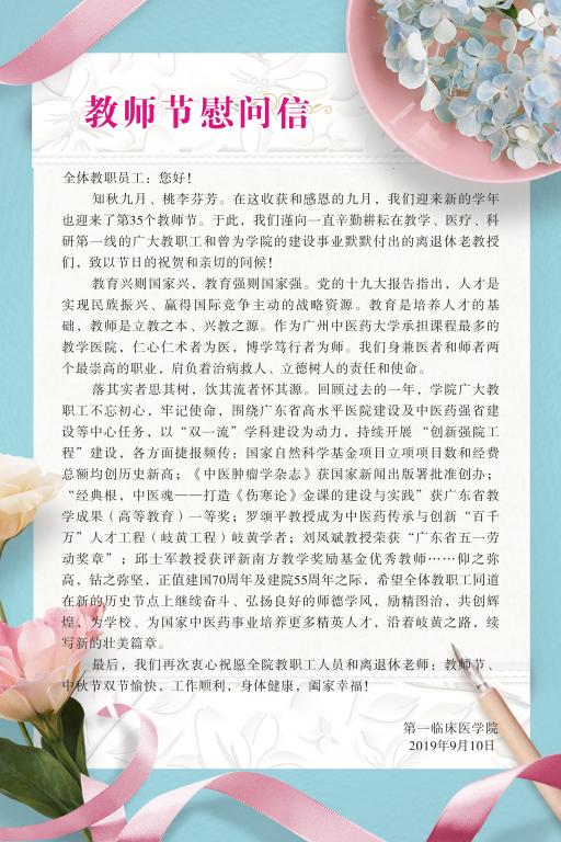 致全院教职员的的教师节慰问信