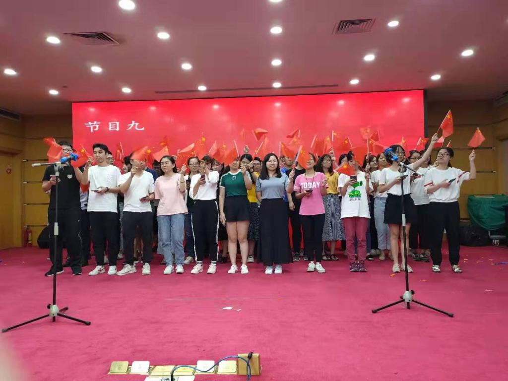 2019年9月25日晚,第一临床医学院2019级硕士班在附院13楼大会议室隆重举行了“不忘初心,奋进正当时,建功新时代”为主题的喜迎国庆暨班级形象展示晚会。晚会由辅导员刘文红老师指导,2019级硕士班党支部、团支部和班委联合举办,由年级文娱委员龚宇欣、向科旭主持,全年级200多名硕士同学一起载歌载舞,热烈祝贺中华人民共和国成立70周年。