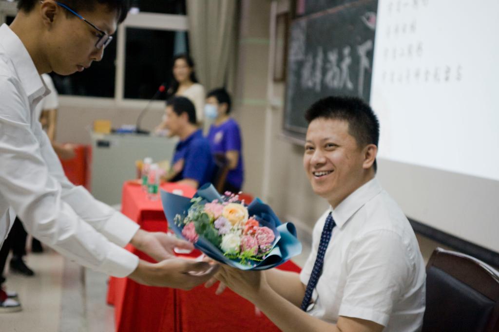 紧接着,所有人起立,集体诵读《大医精诚》选段“凡大医治病,必当安神定志,无欲无求,先发大慈恻隐之心,誓愿普救含灵之苦……”。坚定理想信念,心怀天下苍生,悬壶济世,救死扶伤,在学习更为深入的专业知识前,我们更先要懂得作为一名医者的准则。在拜师礼环节中,各组导师依次上台就坐,学生呈递拜师贴和鲜花,并向老师鞠躬,导师回帖后进行了合影留念。