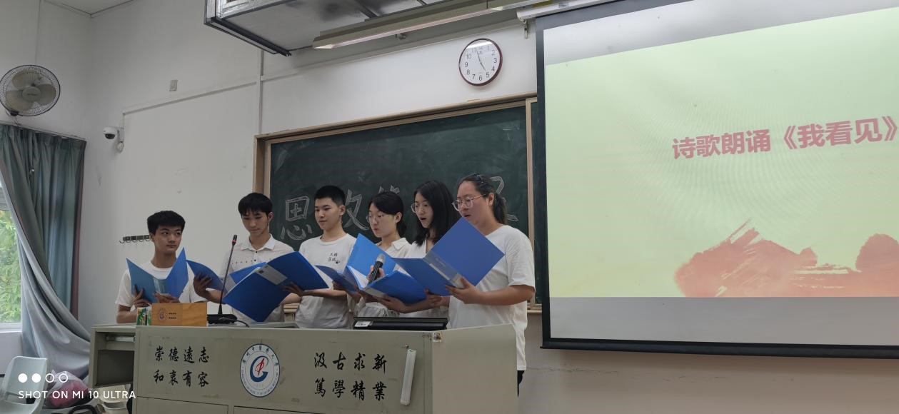 课后,临床班开展了“我心目中最美的抗疫英雄”主题团日活动。活动开始,全体同学起立,奏唱中国共青团团歌。活动第二项内容,由获得“寒假优秀作业”的三位同学向大家介绍心目中最美的抗疫英雄。首先是黄景豪同学为大家带来分享,他介绍了家乡的一位检疫站点志愿者。面对他人的诱惑和刁难,这位平凡的志愿者却表现出令人称赞的公正与坚毅。第二位分享的是杨天生同学,他从“白衣执甲”、“志愿前行”、“疫起助农”三方面全面地向大家展示家乡的抗疫实况,并最后发出“英雄们做出了榜样,守护了值得我们用一生去守护的国家、人民”的感想,引发同学们的深思。最后分享的是陈新柳同学,他介绍了一位“身残,但志气精神不残”的医护志愿者——韦昌辉。这名特殊志愿者的事迹令人动容,他的精神也值得我们每一个人学习。活动第三项内容,张书记和辅导员邱敏老师为获得“寒假优秀作业”的同学进行表彰并合影留念。活动最后,班级学生代表表演了诗歌朗诵——《我看见》。他们的声音磅礴有力,蕴含着对战疫英雄的敬佩以及对祖国的无限热爱。