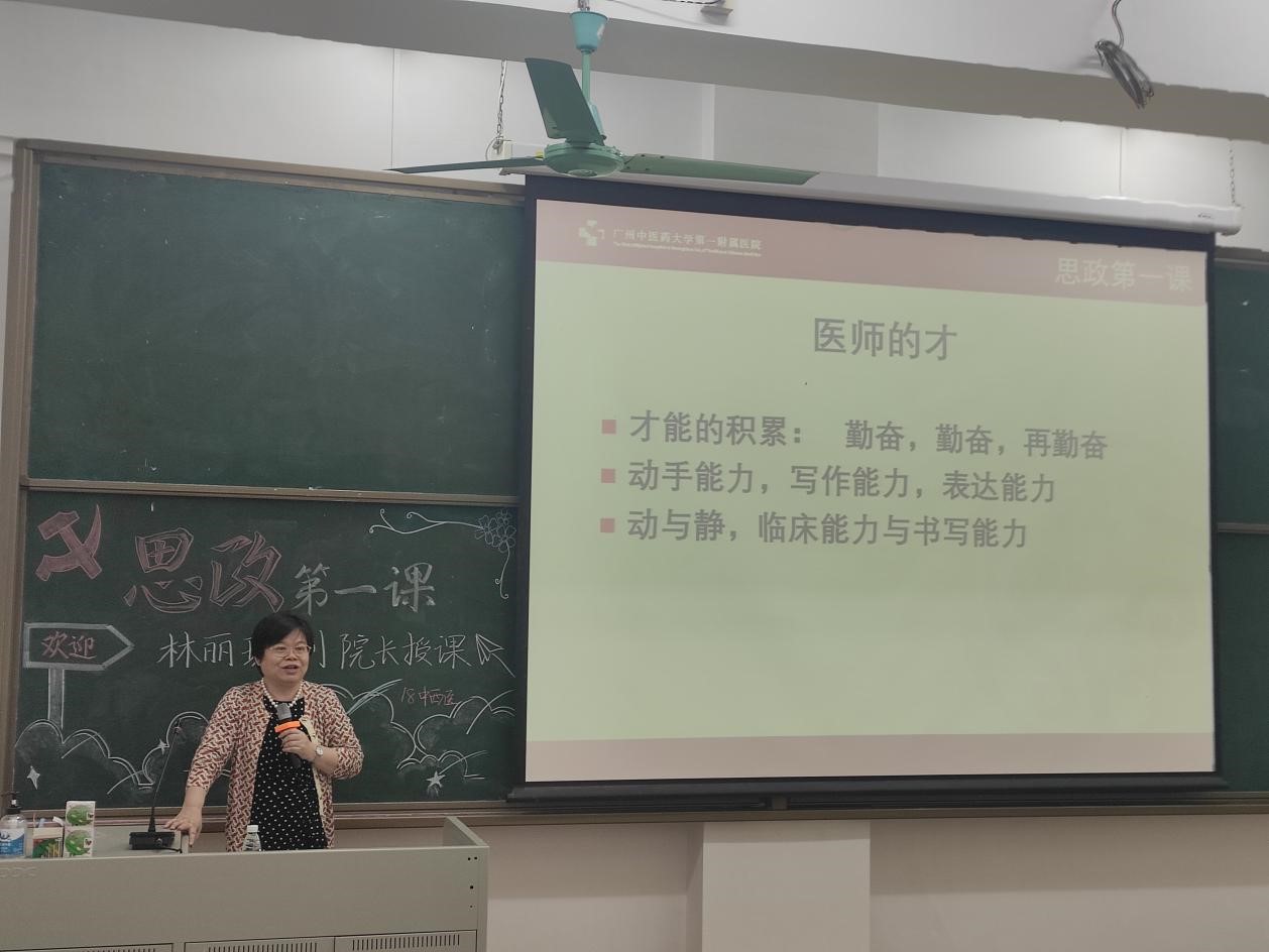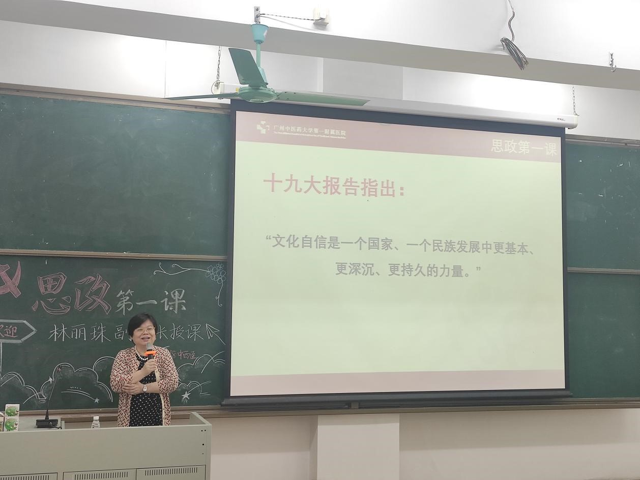 2021年4月9号上午,广州中医药大学第一附属医院林丽珠副院长以“文化自信——坚定中医文化,从医学生到精诚大医”为主题,为2018级中西医临床专业的同学们讲授了思政第一课。