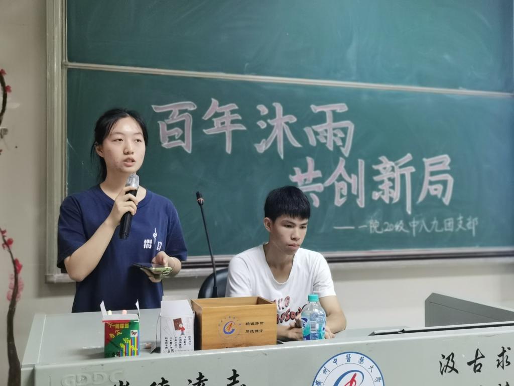【一院讯】2021年4月19日19时,广州中医药大学第一临床医学院2020级中医学八九年制团支部于综合楼201召开了“百年沐雨,共创新局”主题团课。本次主题团课旨在通过回顾寒假期间班级以“追寻红色基因,争做时代青年”为主题开展的寒假主题活动的实践成果,在学习红色精神的同时,在党的百年华诞之际,拉开“庆百年辉煌,聚星火起航”系列红色传承团日活动的序幕。