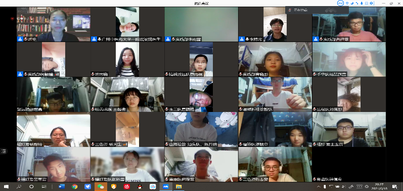 第二位主讲嘉宾开讲之前,在主持人的邀请下,与会的三位老师、全体同学们打开摄像头,合影留念。接着,梁锐老师以“调研的选题与对象”为主题,通过选取我院今年三下乡各队伍有代表性的选题,以全程互动的形式,与各队伍队长连麦,具体分析各调研主题选题以及未来开展研究可能存在的问题、可进一步拓展的方向等,从而启发同学们后期进一步完善选题的设计等。例如,玉兰队着手于社会人群对自闭症儿童的关注度,梁老师提出同学们应在调研关注度的基础上,探索如何提高关注度的方法,这样更能深化研究的意义。