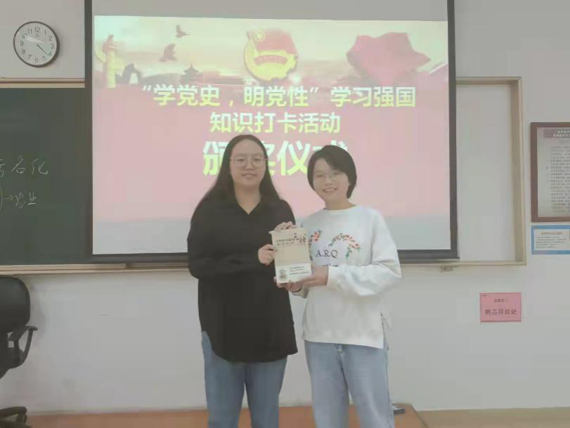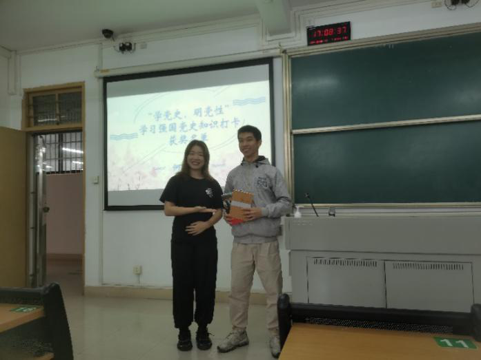 2021年10月27日至10月29日,第一临床医学院大学城学生党支部“学党史,明党性”学习强国知识打卡活动颁奖仪式在各班顺利举办。为庆祝中国共产党成立100周年,深入贯彻习近平总书记在党史学习教育动员大会上的讲话精神,加深递交入党申请书的同学们对党史的了解和认识深度,我院大学城学生党支部举行学习强国党史学习打卡活动,希望用青年人的话语将党的理论和实践在青年人中传扬开来。从4月9日开始,参加打卡活动的同学们按照格式(话题+学习心得+截图)将学习内容上传至易班微社区,每周打卡次数下限为三次,无上限要求。
