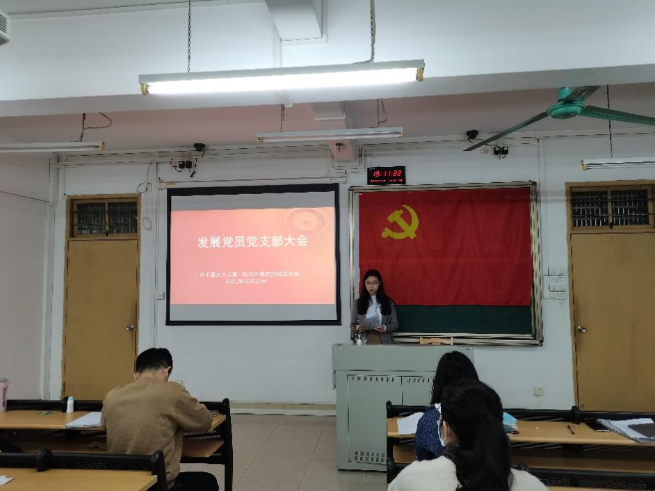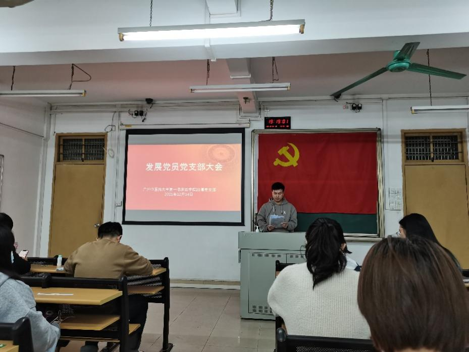 2021年12月14日,第一临床医学院2020级博士党支部在三元里校区新课室楼召开党支部大会,认真学习习近平新时代中国特色社会主义思想,并顺利表决通过了三名博士成为预备党员。兼职组织员、辅导员刘文红老师莅临现场进行指导,全体党员23人参加了大会。