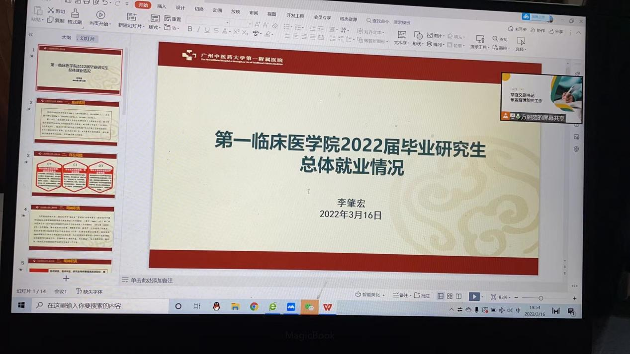 2022年3月16日晚上19:00,第一临床医学院2022年研究生导师培训大会在腾讯会议上顺利召开。本次导师培训大会邀请了大学研究生院鄢来均院长,学院党委章遐义副书记,杨忠奇副院长莅临指导。培训大会由教学处方熙茹处长主持,全院180余位导师全程线上参会。