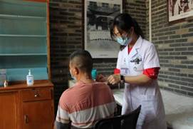医生为村民进行针灸治疗 医生为村民进行“点棍”治疗
