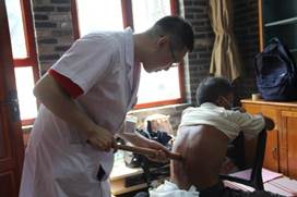 义诊开始,来自广州中医药大学第一附属医院脾胃病科、心血管科、骨科、针灸推拿科的4名医生为村民们开展健康咨询、疾病诊断,以及具有中医特色的点棍治疗、火针治疗等。而学生志愿者们也毫不示弱。看!他们量血压时专注的神情、推拿时专业的手法、脊柱侧弯筛查时娴熟的动作、赠药时耐心的解说,收获了村民们满意的笑容。86岁高龄的张奶奶听闻我们的到来,顶着烈日,拄着拐杖也赶了过来。在接受了师生们耐心细致的医疗服务后,她竖起了大拇指连声说道“年轻人好啊,你们来了好啊”。 村民们的认可也仿佛给师生们送来了炎炎夏日的缕缕清风。