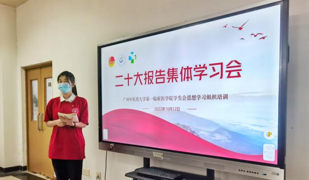 为深入学习、深刻领会党的二十大报告的丰富内涵和精神实质,持续提升学生会工作人员的政治素养,以扎实高效的工作打造“清新阳光学生会”,第一临床医学院学生会于10月17日17:20在护理楼104举办党的二十大报告专题学习会,学生会工作人员及志愿者代表共38人参加会议。