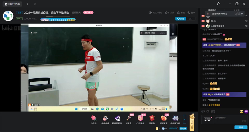 [一院讯]居家战疫情,运动不停歇,中医专家教你如何进行科学锻炼。11月19日晚上19:00至21:00,2022年第一临床医学院线上体育节直播活动在三元里综教楼804正式举行。本次直播活动很荣幸邀请到第一临床医学院骨伤教研室副主任,中国马拉松“医师跑者”——赵京涛老师。当天晚上,实现了腾讯会议和哔哩哔哩app同步直播,两个直播平台观看总人数高达750人。