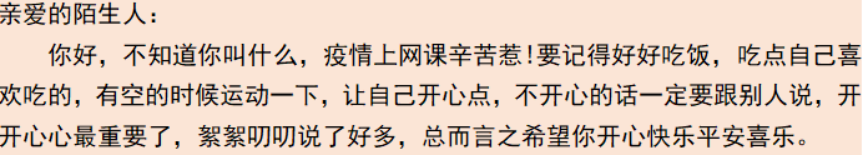 (“温情问候暖心田”一次来自陌生人的温暖问候活动)