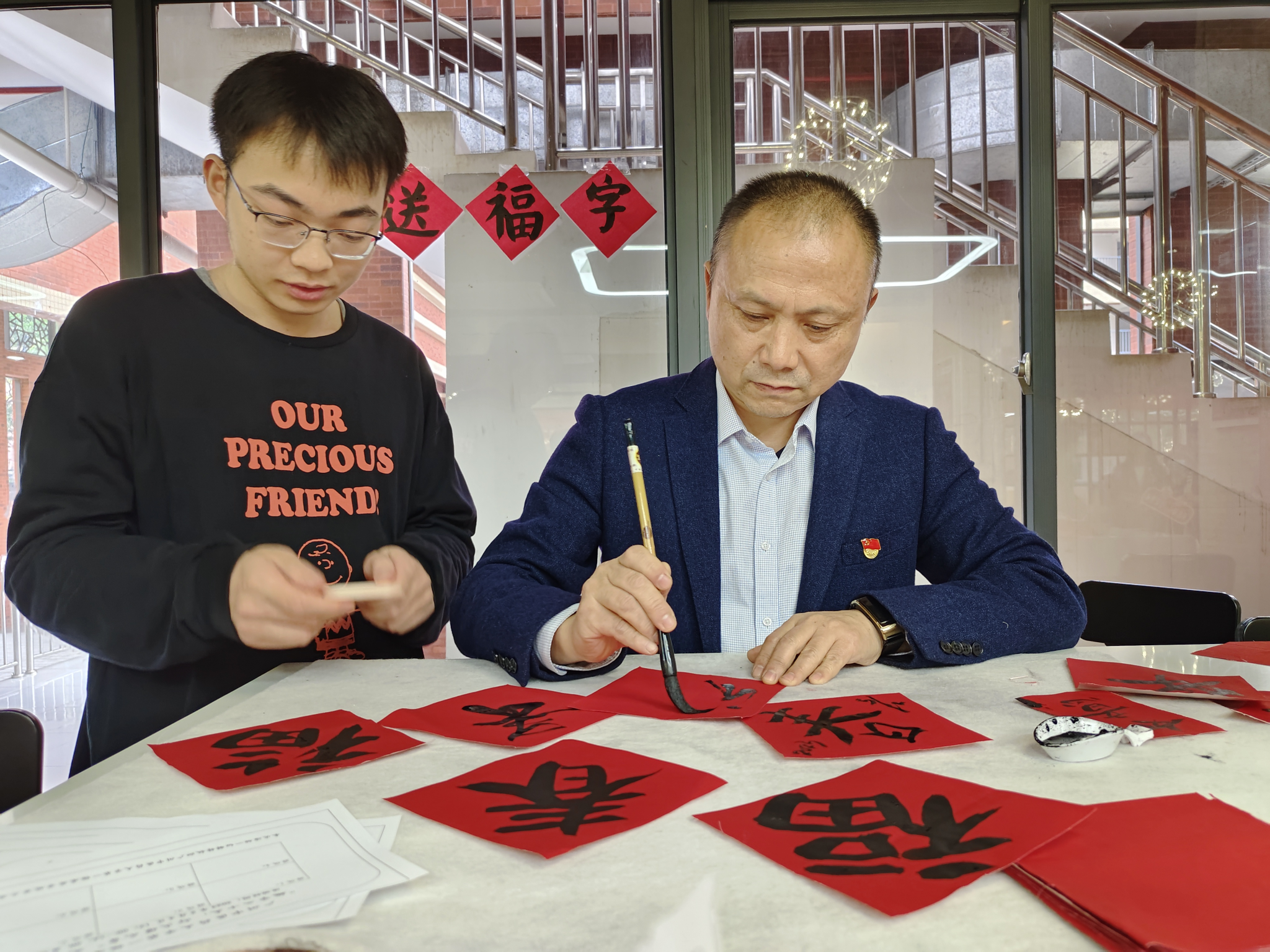 活动中,同学们深刻感受元宵传统佳节的文化与习俗:以诗词对句,大家积极参与猜灯谜活动;巧手迎新福送万家,参与同学们发挥奇思妙想,剪出独一无二的创意窗花;有的同学现场泼墨挥毫,写下新春祝福送给大家;有的尝试传统游戏“投壶”,发挥良好的身体协调能力和心理素质;通过多站打卡盖章的形式,获得套圈游戏的机会,同学们纷纷套中学院为大家准备的元宵节大礼包,现场一片欢声笑语,洋溢着欢乐祥和的迎春气息。