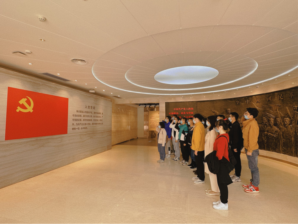 最后,在中共三大会址纪念馆,全体党员在党旗前举行了宣誓仪式,重温入党誓词,通过对历史的实景、文物、文字参观和了解,使大家加深了对中国共产党史的深刻认识和了解,更加坚定了成为优秀党员的决心。大家纷纷表示,要铭记历史才能走向未来,要善于学习,不断提高自身知识水平,不负韶华,为成为优秀的医学生而努力拼搏。