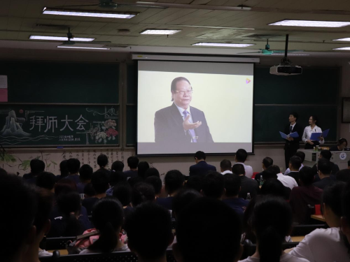 全体在场师生认真观看国医大师周岱翰教授的寄语视频