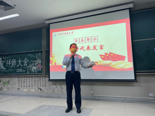朗诵结束后,学业导师代表吴伟教授发言,他勉励大家将自己的命运紧紧地把握在自己的手里,同时要拥有“专业自信”,坚持早临床,多临床,坚持跟师临床,珍惜学校和学院提供的平台,重视传承创新,刻苦学习,勤于实践。学生代表黄滢栾同学在发言中表示,作为中医传承人,同学们肩负着传承发扬中医文化的光荣使命,相信在学业导师的悉心指导下,同学们一定能成长为中医学的栋梁之材,为传承中医事业提供绵薄之力。在总结讲话中,杨忠奇副院长表达了他对导师和同学们的充分肯定,希望大家发扬第一临床医学院的“精诚”文化,将其融化于日常生活和学习中,相信通过导师和同学们的共同努力,将来会有更多的成果和更突出的展示。