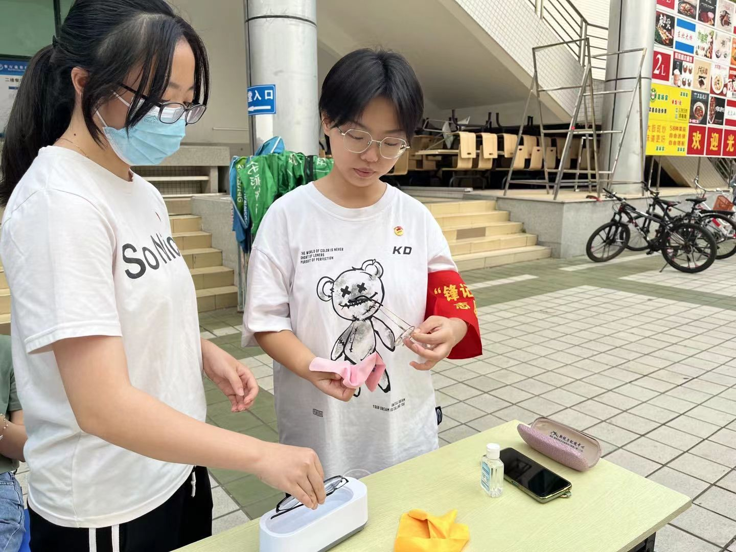 (志愿者为同学洗眼镜、洗车)