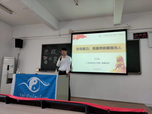 为深入学习贯彻党的二十大精神,以中国式现代化全面推进中华民族伟大复兴,在推进中国式现代化中展现青年担当与作为,奋力谱写全面建设社会主义现代化强国新篇章,2023年4月3日下午,广州中医药大学第一临床医学院(第一附属医院)王大伟副院长以讲述“自身经历、回望过去、展望未来”为主题,在三元里校区综教楼808为2020级眼视光学专业的同学们带来了一场精彩的“思政第一课”,参会人员有辅导员李肇宏老师及2020级眼视光学专业全体学生。
