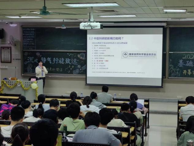 4月13日,基础科研培训班第一讲之“沉心静气,行稳致远”讲座准时开讲,本次讲座邀请了广州中医药大学第一附属医院科研处处长郜洁教授为我院学子们讲解中医科研的相关知识。郜洁老师从新时代中医药学生的使命、当下中医药学生的困惑、本科阶段中医科研思维的培养等三个方面为同学们讲解如何正确认识科研与中医的关系。郜洁老师指出,要沉心静气,方能行稳致远,科研没有捷径,切忌急功近利;科研追求真理,不容弄虚作假;科研是螺旋前进,重在坚持。郜洁教授的授课让在场学员们更好地了解中医科研、理解中医科研、接纳中医科研,激励同学们立志成为一名有态度、有主见、有能力的中医科研实践者。