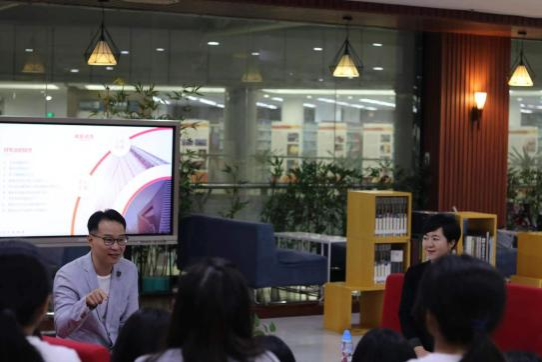 讲座的后半段,武夏林老师通过访谈的模式与林董事长针对眼视光未来发展方向这个话题进行问答对话。两位老师从市场需求和就业方向两方面为在场同学们进行详细分析,同时也提出了个性化的建议。在讲座尾声的提问环节,同学们积极向老师提出自己的疑惑,老师们一一授予以耐心解答。