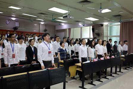 与会人员合唱国歌