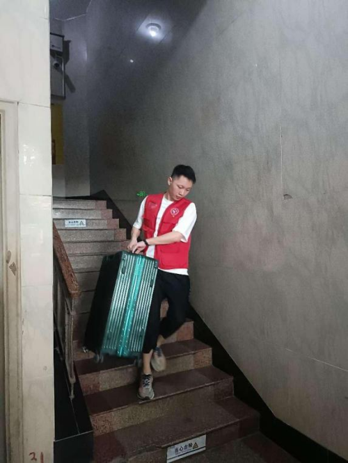 (志愿者协助搬运行李)