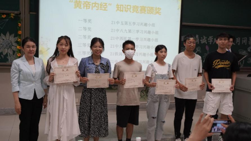 接下来是2023年《黄帝内经》知识竞赛以及“杏林杯”基础科研标书大赛获奖队伍的颁奖环节,郭文海副书记为获奖同学进行颁奖并给予亲切鼓励。