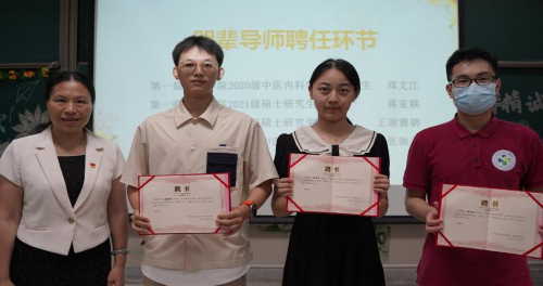 紧接着是学习兴趣小组的学业导师和朋辈导师的聘任仪式,一批经典、科研、创新创业等方面的优秀教师和高年级学子被聘任为我院学习兴趣小组学业导师和朋辈导师。聘任仪式结束后,学院18级中医学五年制班级张驰名同学作为朋辈导师代表发言,他强调了“人生生涯规划”的重要性,建议同学们注重经典学习和临床实践,在生活中践行中医理论,学好用好中医。
